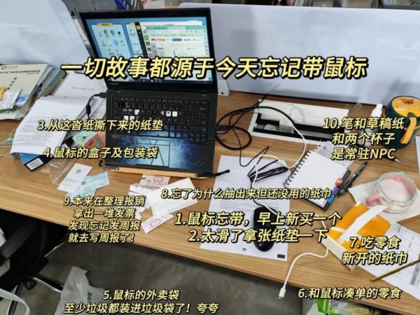 小文首先做到的,是不再刻意追求桌面的整洁。她特意为自己办公室工位凌乱的桌面做了一张“注解图”。“每个地方的乱,都有理由和意义”,小文说。她不再回避“乱”这件事,因为其中自有秩序。