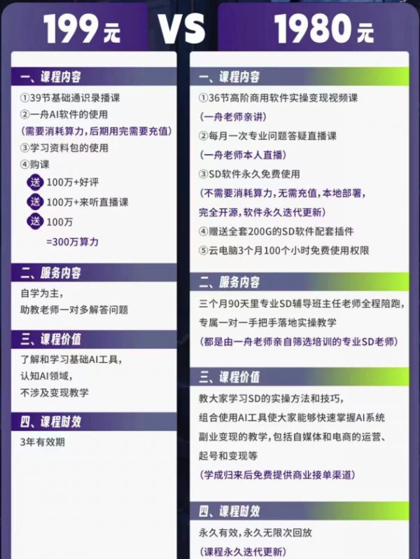 李一舟AI课的对比介绍 图源 / 受访者供图