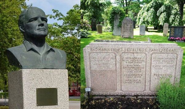 伯尔林的胸像和家族墓地 | 图源:维基百科(左)及笔者拍摄(右)