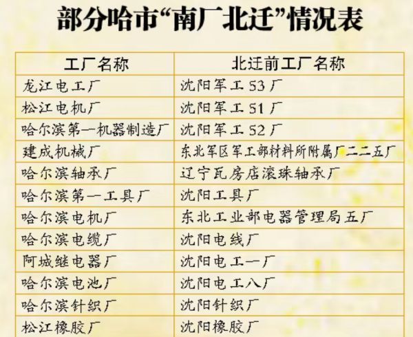 哈尔滨承接关内外,特别是辽宁的重工业转移,辽宁25家重工企业“南厂北迁”到哈尔滨。
