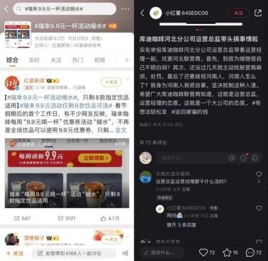 #瑞幸9.9元一杯活动缩水#的话题才爬上新浪微博热搜,“库迪咖啡河北分公司运营总监带头坑害河北联营商”的实名举报帖就出现在了小红书,一时竟分不清这是咖啡圈还是娱乐圈。