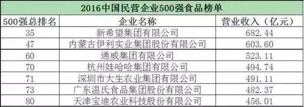 图:2016中国民营企业500强食品榜单
