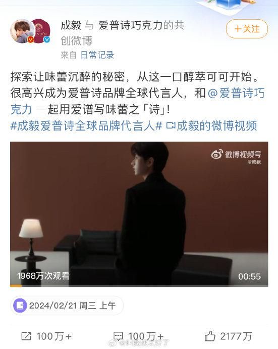 成毅这条商务博点赞已经破2000w了,成毅现在流量这么顶了吗?[哆啦A梦吃惊][哆啦A梦吃惊]