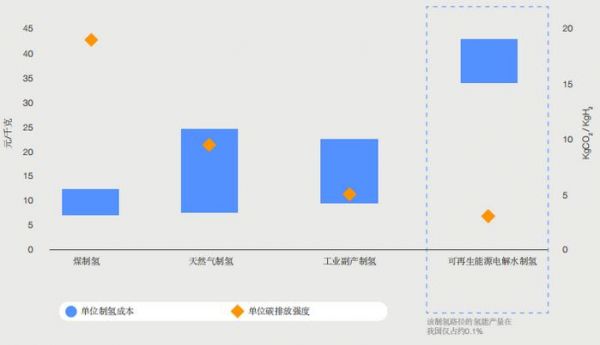 图7 化石燃料制氢与可再生能源制氢的生产成本和碳排放强度比较