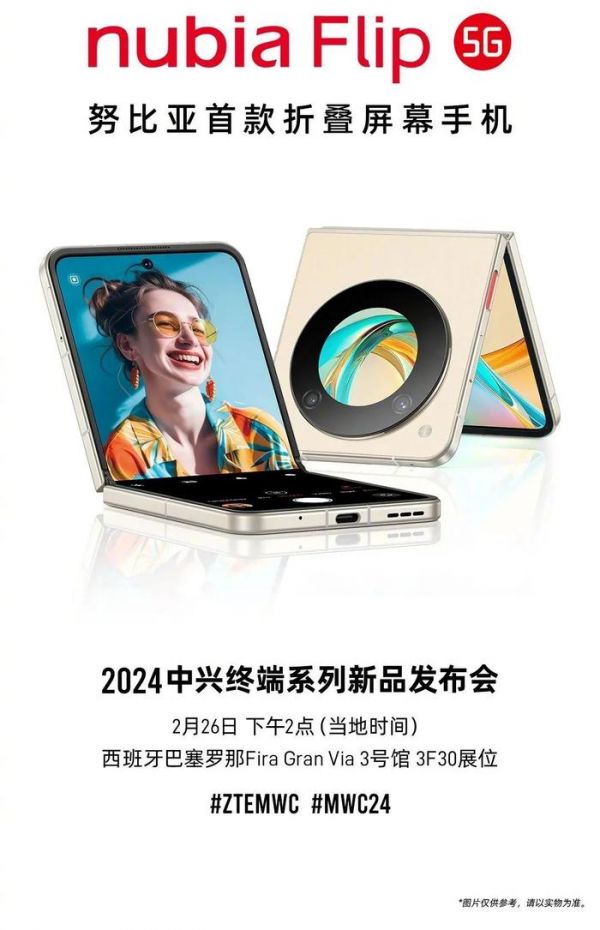 近日,努比亚首款折叠屏——努比亚Flip官宣将于2月26日在巴塞罗那MWC的2024中兴终端系列新品发布会上亮相。现在这款小折叠已经入网,工信部把基础参数公开了,来看看怎么样~