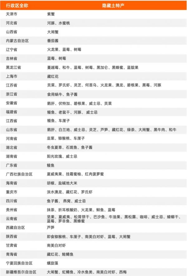 各省隐藏土特产丨图源淘宝报告