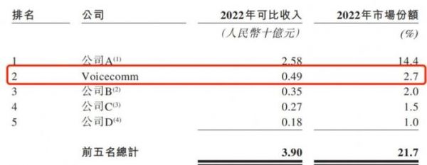 根据艾瑞咨询报告,以2022年收入计算,声通科技是中国第二大企业级全栈交互式人工智能解决方案提供商,仅次于科大讯飞。