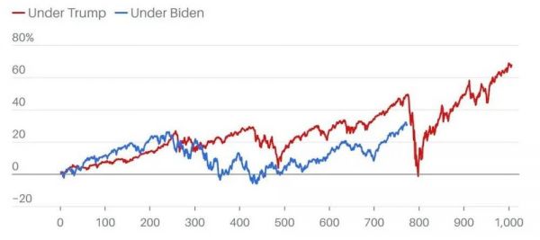 特朗普任期内1006个交易日和拜登任期内773个交易日标普500的走势