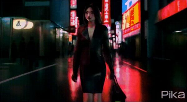 同样是女人在东京街头漫步的指令,Runway生成的视频暂停看还都像那么回事,连起来就只能用“千变万化”形容,女人的形象并不能随着时间的推移保持稳定。要知道Sora的演示视频中还有机位的变化,从远景到脸部特写,女人的形态始终如一。Runway生成的视频更像是很多张图片的动态融合。