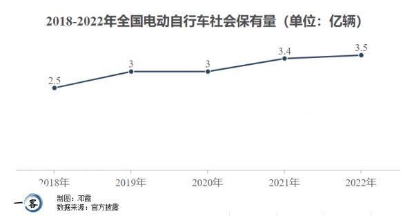 2018年,全国电动自行车社会保有量预计为2.5亿辆。到2022年,这一数字已经变为3.5亿辆,同比增长40%,每四个人就有一辆电动自行车。