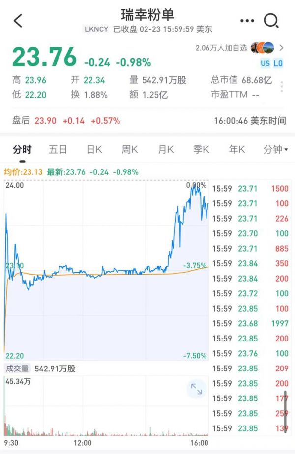 市场对于瑞幸的预判也不够乐观,近几个月来,瑞幸的股价一直呈下降趋势,截至2月23日收盘,报每股23.76美元。瑞幸市值较去年10月11日103.3亿美元的高点,缩水了三成以上。