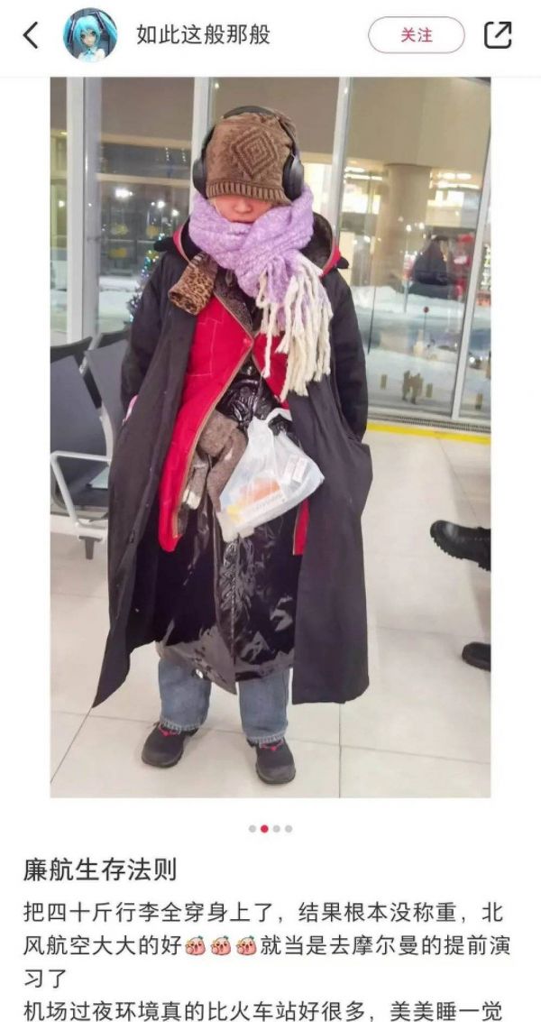 登机前可能是这样:叠系两条围脖,叠穿N件外套,腰间还挂着个塑料袋,恨不得把行李全穿身上。