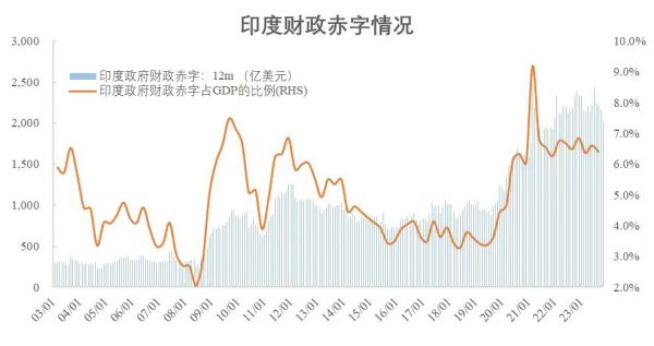 印度中央政府事实上也是捉襟见肘,截至2023年6月,印度外债达6291亿美元,占2022年GDP约19%的比重,而同期外汇储备规模为5280亿美元,每年仅外债利息就达5000亿卢比。财政赤字高企,赤字率经常过线,从2020年开始,一直在6%以上,远高于3%的国际警戒线水平,2023年稍有降低,仍然达5.9%。