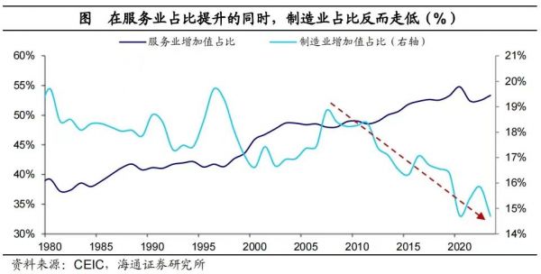 莫迪政府2014年上台后,参考中国等东亚国家发展经验,提出了“印度制造”计划,预期2025年(原计划是2022年)将制造业增加值占比达到25%。2007年,印度的制造业占比一度接近19%,然而到2022年已经回落至15%以下,明显低于同期中国(28%)、越南(25%),与莫迪提出的目标已是南辕北辙。