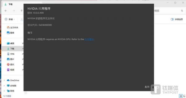 实际上,钛媒体App编辑手中的一台Redmi Book 15E,由于没有内置NVIDIA独立显卡。因此,我们安装很多支持CUDA如NVIDIA App等多款 AI 应用就会显示“安装无法继续”——GPU已深深改变了我们的生活。