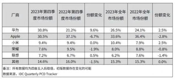 但问题又来了,真有这么多消费者愿意玩万把块去买一台平板电脑回来吗?市场的答案是「不会」。根据 IDC 发布的 2023 年第四季度中国平板电脑季度跟踪报告显示,华为时隔四年再次超越了苹果,成为中国平板电脑市场出货量第一。而华为能够获胜的原因,自然是价格方面足够「亲民」。