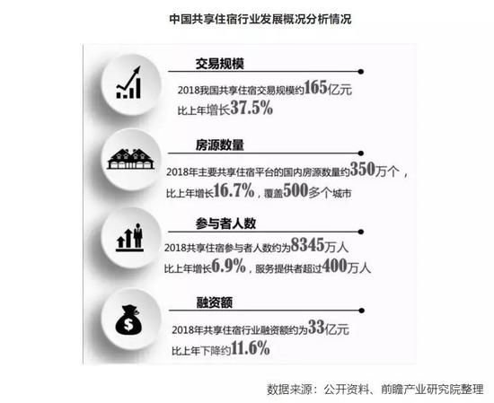 共享民宿市场则是另一个逆势向好的领域,7月初国家信息中心分享经济研究中心发布的《中国共享住宿发展报告2019》显示,2018年我国共享住宿市场交易额为165亿元,同比增长37.5%,预计未来3年将保持50%的市场规模增速。