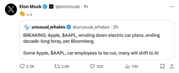 突发:苹果放弃造车,转向人工智能