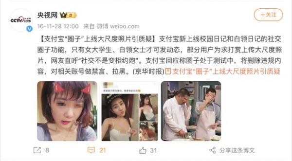 可惜在2013年,阿里就收购了当时的王牌社交应用——微博,而微信公众号也成功开辟了以“内容+社交”为核心的自媒体生态,支付宝在社交领域的尝试不过浅尝辄止,更悲催的是“圈子社交”因为内容失控捅出大篓子,无奈只能下线关停。