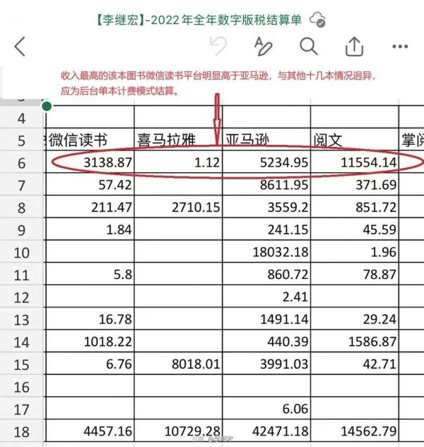 知名译者李继宏在豆瓣网晒出个人2022年数字版税结算单。