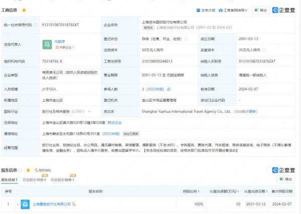 被责令停业后,墨鱼旅行近日火速全资收购上海悦华国际旅行社,企查查显示,这家公司注册资本50万元,参保人数3人。