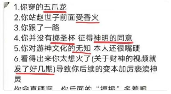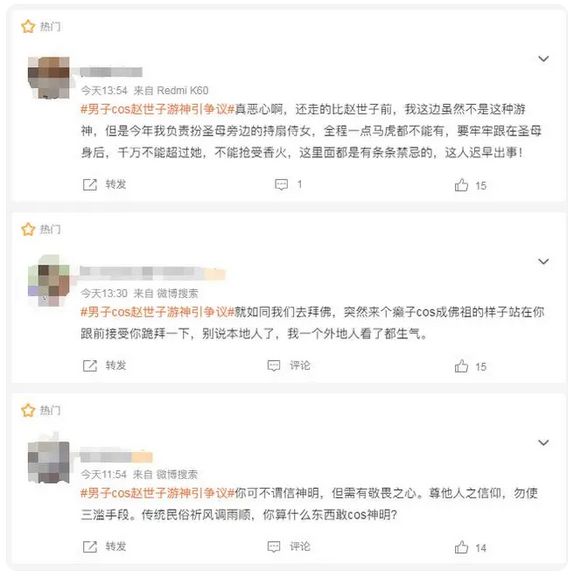 而游神事件的主角赵世子,很多人指出这个神灵可能是近年来生造的新神,神偶的形象属于当下流行的偶像审美风,与传统形象没什么关系,妥妥的新时代淫祀。最后,那个试图蹭热度的网红被人指责理所当然,但被不少人骂他偷香火,破坏信仰。这种指责又让不少人觉得很不舒服,显得和我国提倡唯物主义,破除迷信的基调格格不入。