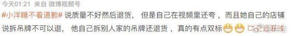 百万网红「小洋睡不着」为拆吊牌仍退货道歉:自己没有常识