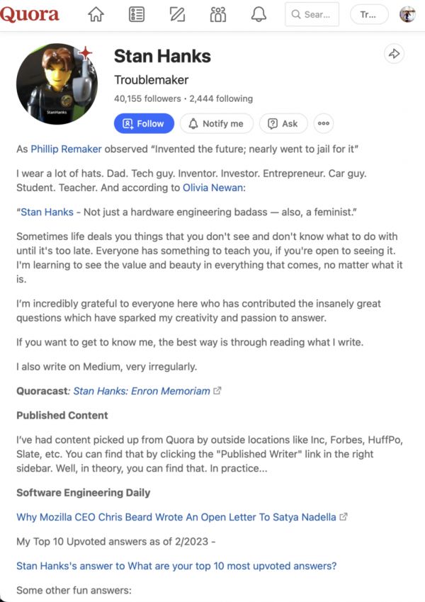 Stan Hanks 2012 年开始成为 Quora 用户,活跃至今|Quora