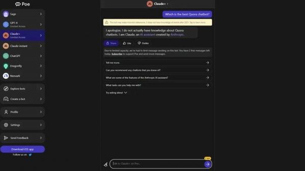 到了 2022 年底,Quora 推出了他们研发的聊天机器人 Poe,Poe 致敬了美国著名作家爱伦·坡(Allan Poe)。用户可以直接向 Poe 提问,Poe 会从各类模型中搜索靠谱的答案,并给出尽量接近真人的回答。这似乎能解决用户在 Quora 上提问后,几天都没人来回答问题的窘境。