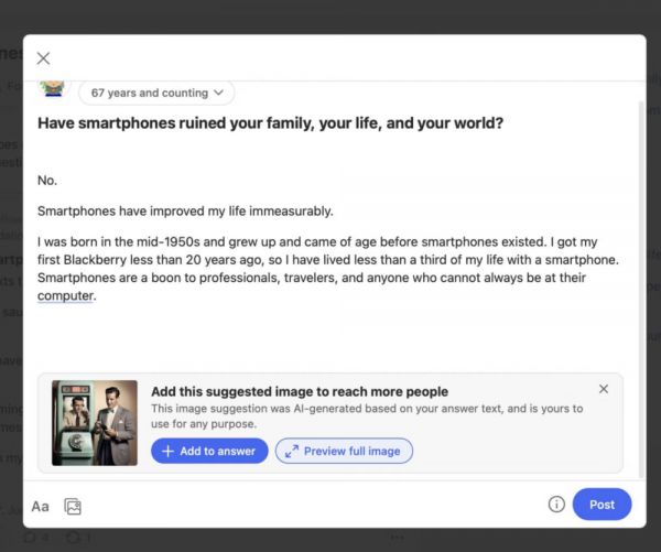 AI 的介入也引起了社区内外的广泛讨论,在 Reddit 的论坛贴“大家还用 Quora 吗?”里,许多前 Quora 用户表示,自己曾是重度用户甚至顶级作者,但 Quora 在变成一个“点击率至上的地方”,充斥着 AI 生成的问题和答案。
