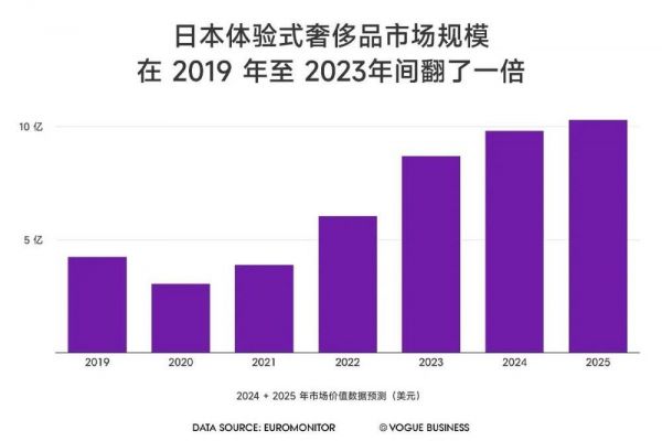 富有创意的零售故事是品牌瞄准日本消费者的关键手段。根据欧睿国际的数据,该国的体验式奢侈品市场规模从 2019 年的 4230 万美元飙升至 2023 年的 8710 万美元,在 2026 年或将达到 1.03 亿美元。