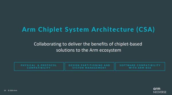 芯粒已成为管理良率的常用机制,能让企业在单个芯片上利用到多种工艺节点。基于Arm全面设计生态伙伴的反馈意见,Arm打造出近期发布的芯粒系统架构(Chiplet System Architecture,CSA)。CSA旨在定义一个功能强大、支持通用的芯粒生态系统。