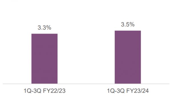 (图示:联想集团近两财年1-3季度研发支出/收入比率)