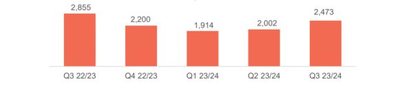 当然,联想不光有新品的持续推出,在业绩上也重新回到正轨。日前公布的联想2023/24 财年第三季度业绩中我们就看到了联想业绩持续恢复增长的迹象:联想当季营收157.21亿美元,同比增长3%;净利润3.37亿美元,环比大幅提升35%,盈利能力连续两个季度实现环比改善。