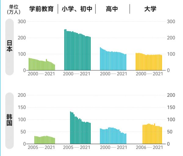 由于人口下降对教育存在滞后效应,中小学先行一步,而大学也难以置身事外。
