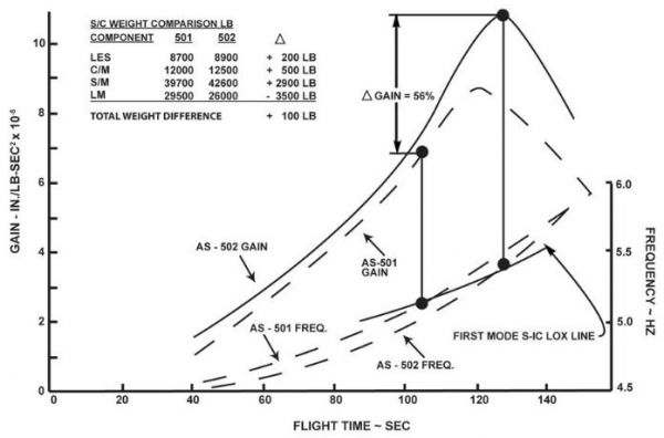 以下摘自Lessons Learned in Enginerring:土星V火箭飞行中有两次著名的POGO振动现象。AS-501飞行表现完美,AS-502箭体前端存在900磅重量变化(仅占起飞重量6000000磅的万分之一),任务在一级飞行即将结束时,出现了显著的POGO振动;阿波罗13二级工作到120秒时,发生了巨大的POGO振动,由于发动机泵压力极度增大,机架处振动达到了34g,可能机架都变形了,最终中心发动机关机。