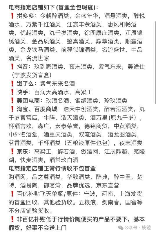 不管在哪个平台,百亿补贴产业链都遵循几个潜规则:盲盒、指定店铺的酒更容易被回收,以及业内认为宁波商家的酒问题更少。