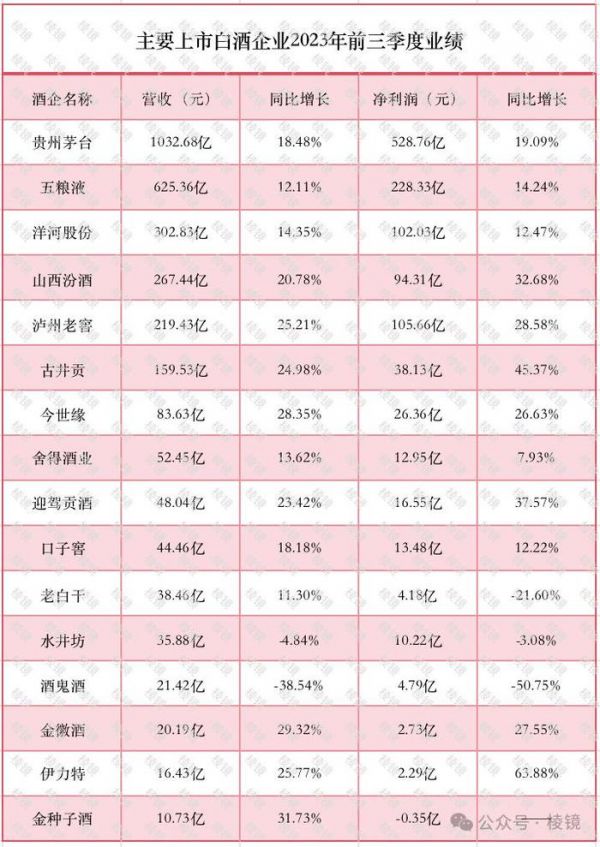 但即便如此,2023 年前三季度,大部分白酒企业的营收、净利润都呈现出双位数的涨幅。" 酒企业绩依然亮眼,渠道商的日子却很难过。" 有酒商这样感叹。