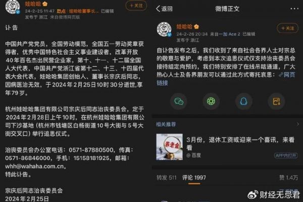 在最初的讣告中,娃哈哈向全社会公开了追思会的时间地点,并面向社会公众公开。