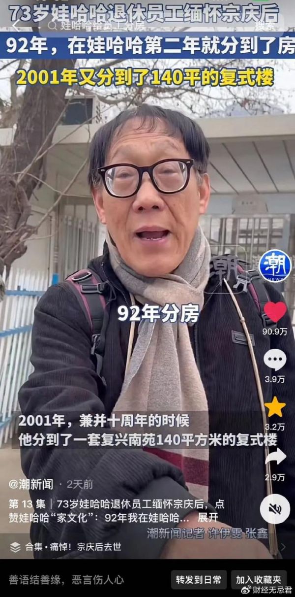 宗庆后的员工介绍分房经验,图源网络