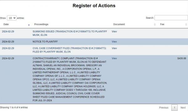 马斯克向旧金山高等法院提起诉讼,以违反合同为由,状告OpenAI CEO萨姆·阿尔特曼(Sam Altman),OpenAI联合创始人、总裁格雷格·布罗克曼(Greg Brockman)以及OpenAI多个实体。不过被告名单没有出现疑似已经离开OpenAl的OpenAI联合创始人兼首席科学家伊尔亚·苏茨克维(Ilya Sutskever)。