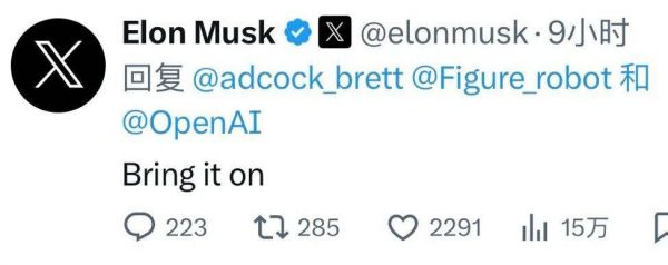 交完起诉书没多久,马斯克又在社交平台X上隔空挑衅,同时@OpenAI和刚官宣被OpenAI投资的人形机器人独角兽Figure AI,公然宣战:“放马过来!”