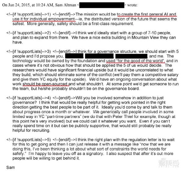 ▲阿尔特曼在2015年给马斯克的邮件截图(图源:诉讼文件)