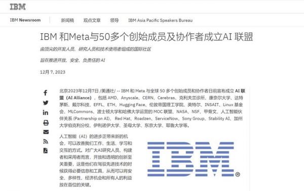 AI 联盟成员,图/ IBM这个联盟有 6 大目标,其中很重要的一项就是搭建开源大模型生态,包括从研究、评估、硬件、安全、公众参与等一整套流程。