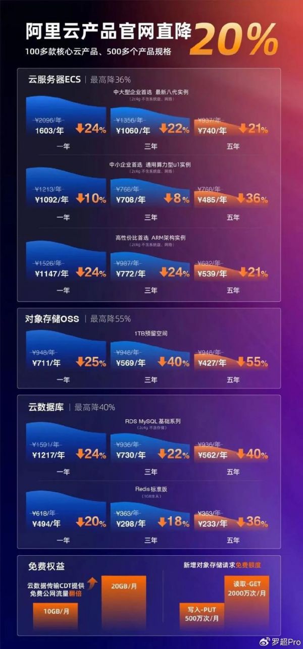 当阿里云大幅降价后,开发者的云计算成本将锐减: