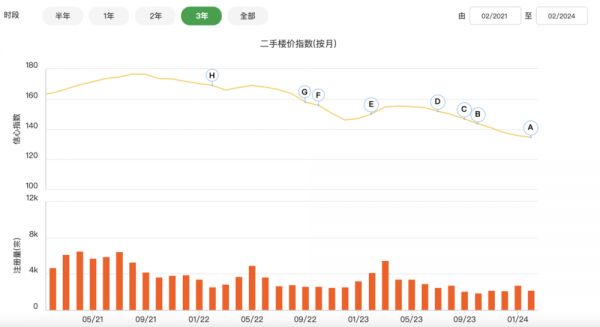 香港楼市在过去几年一直低迷,“辣招”并非下跌的主因,也不会成为多方买入的主因。2024年1月全港私人住宅楼价指数连续9个月下跌,累计跌幅达到13.5%,创下20年来最长的跌幅。这一变化也导致交易量下滑和观望情绪增加。同时,内地购房者也开始关注香港楼市,加剧了香港购房的热情,随后会看到放盘量和成交量的双双大涨。
