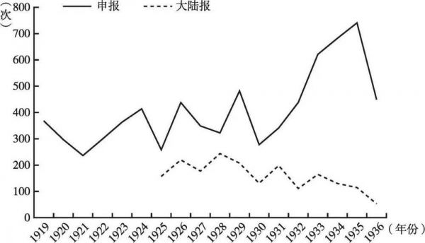 1919~1936年上海百货公司在《申报》和《大陆报》的广告总数