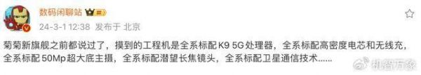 而Art版则有望配备一英寸大底索尼IMX989传感器主摄(推测大概率会在Art版和Pro版上使用),如果产问属实,该机将会是华为史上传感器尺寸最大的影像旗舰。另外,近日,@数码闲聊站还曾爆料称,“菊菊新旗舰之前都说过了,摸到的工程机是全系标配K9 5G处理器,全系标配高密度电芯和无线充,全系标配50Mp超大底主摄,全系标配潜望长焦镜头,全系标配卫星通信技术……”