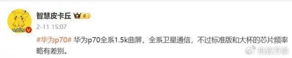 此外,在较早前,数码博主 @智慧皮卡丘 就曾爆料,华为P70系列将全系采用1.5k曲屏,全系卫星通信,不过标准版和大杯的芯片频率略有差别。遗憾的是,芯片的具体型号,该博主并没有透露。不过,目前关于华为P70系列的消息都还停留在爆料阶段,官方并未做出任何回应。所以,该系列最终的外观和配置信息还要以官宣为准。感兴趣的小伙伴就持续关注我们的后续报道吧!