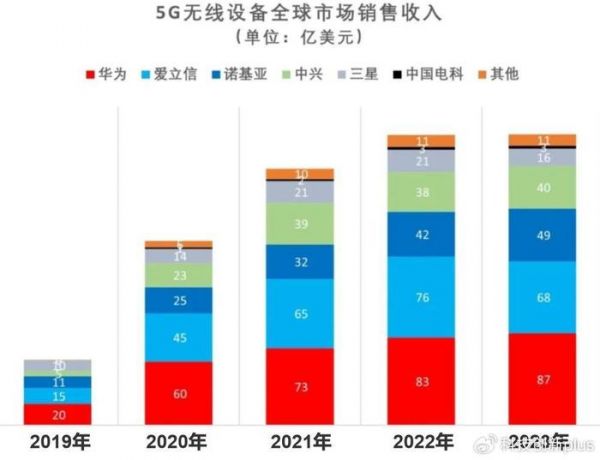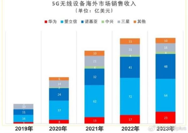 第一张图是排名前5的5大厂商,全球5G设备营收情况图,可以看到几大厂商,从2019年到2023年的收入变化情况。